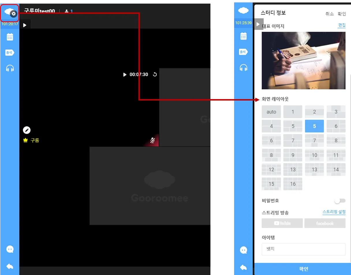 참여자 수에 따라 레이아웃이 순서대로 추가가 됩니다.(최대 16개 레이아웃)