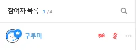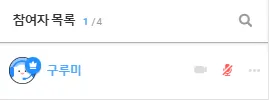 참여자 목록에 카메라 아이콘이 빨간색으로 보입니다.
