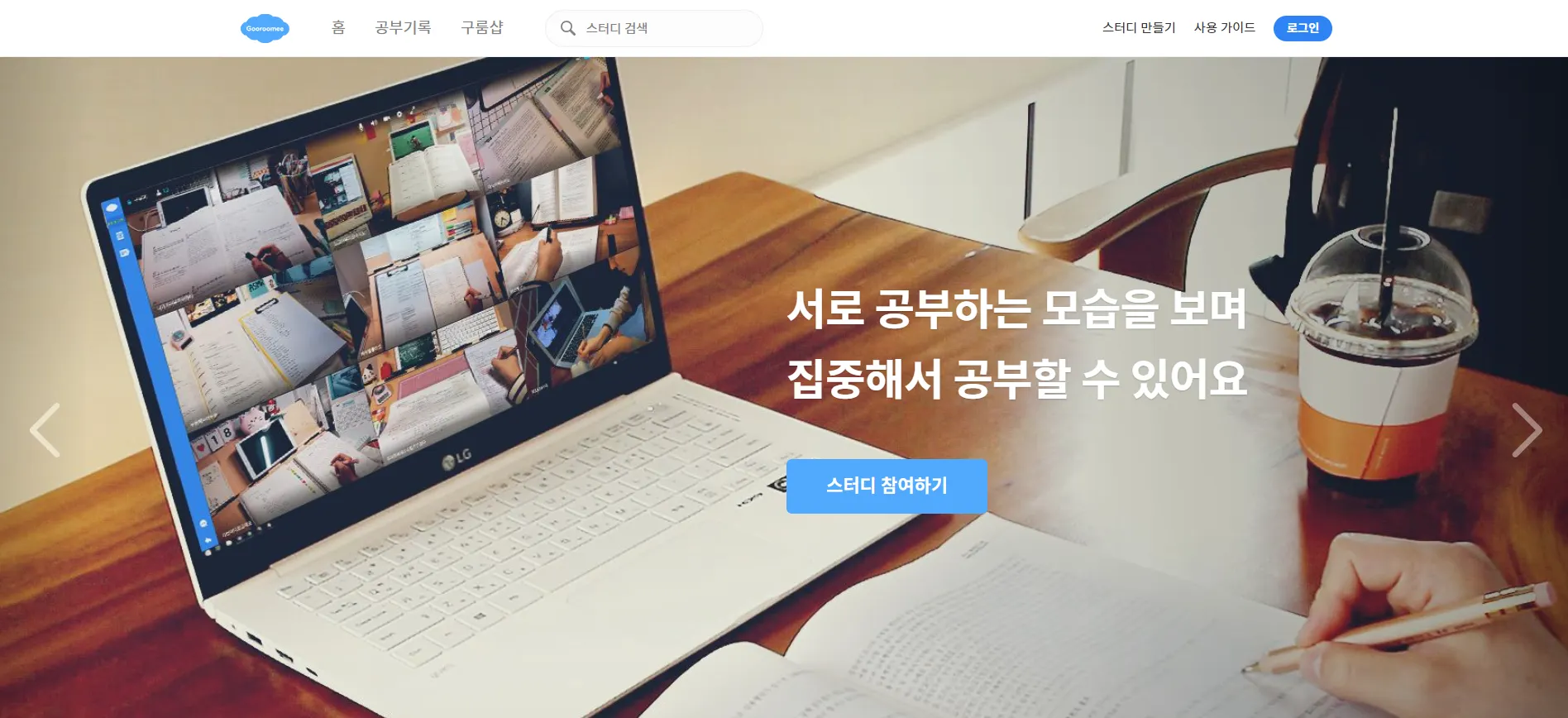이 화면이 보인다면, 구루미 캠스터디 홈페이지에 입장 완료한 것입니다.