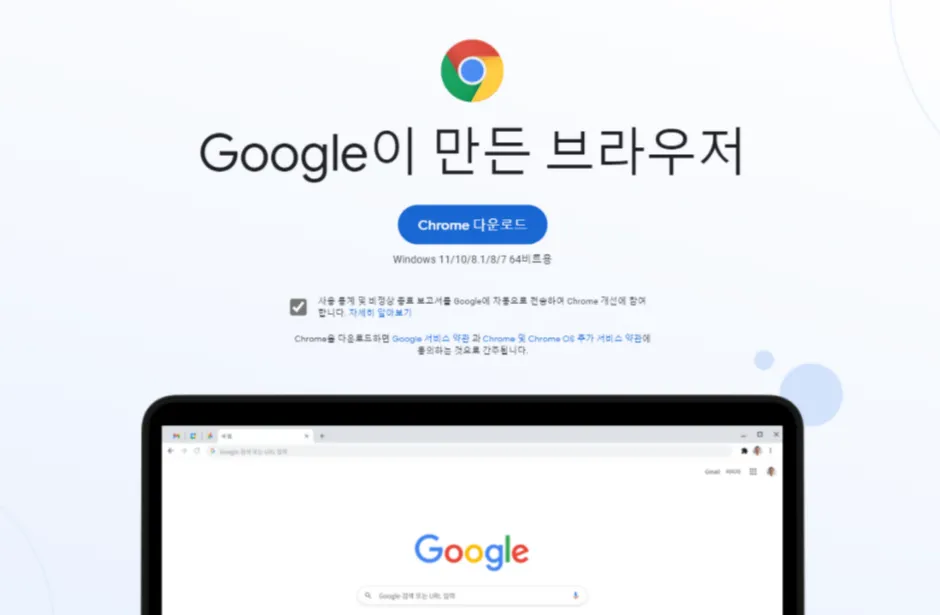 (크롬 브라우저가 바탕화면에서 보이지 않는다면 없을 확률이 있습니다.)