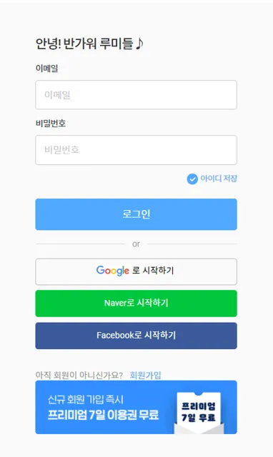 구글/네이버 등 SNS에 가입된 주소와 연동하여 로그인 하시면 됩니다.
