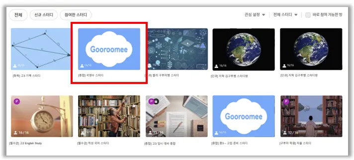 3. 구루미 메인화면에서 스터디방에 참여하기