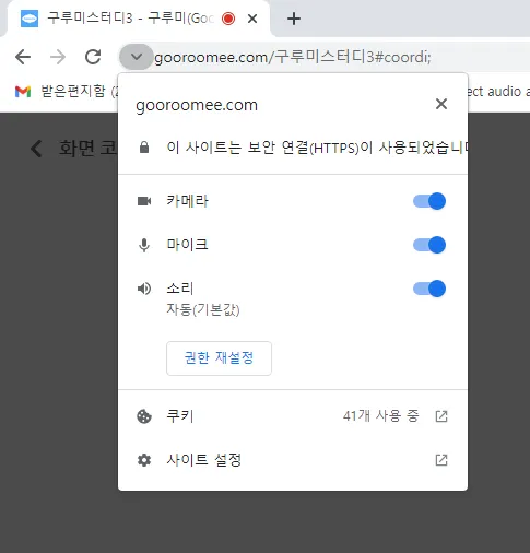 스터디룸 참여가 완료되었으며, 화면 상단 좌측에 뜨는 허용 버튼을 최초 1회만 클릭하시면 됩니다.