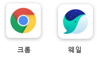 크롬 브라우저 또는 웨일 브라우저가 설치되어있지 않으면