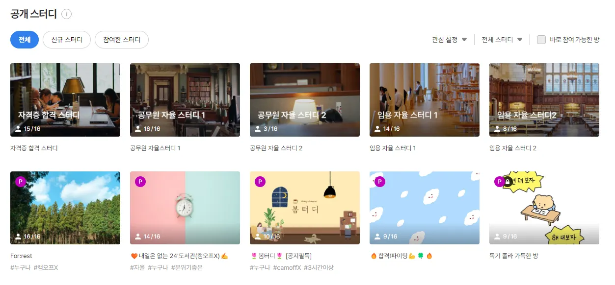 참여하고 싶은 방으로 입장을 한 다음 스터디를 진행하면 됩니다!