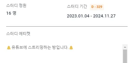 (스터디 에티켓에 기재하면 입장 전 정보에서 확인이 가능해요.)
