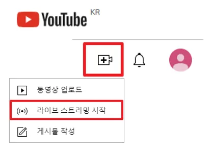 라이브 스트리밍 시작 버튼을 누릅니다.