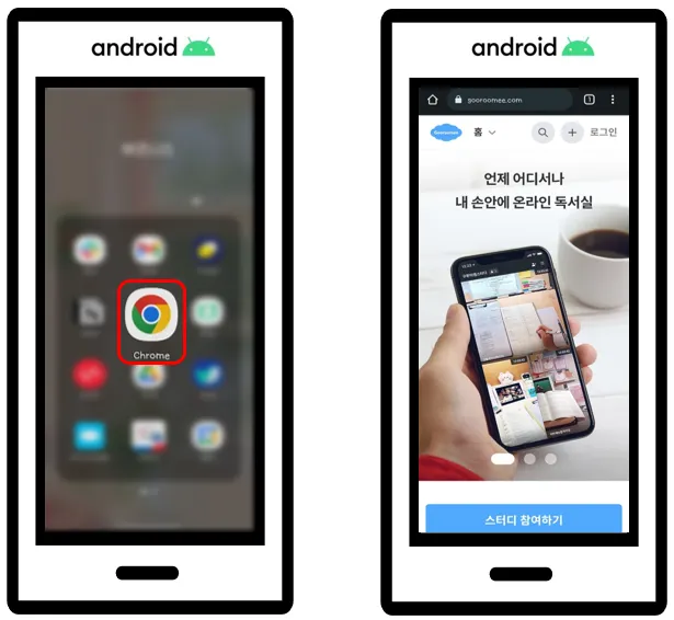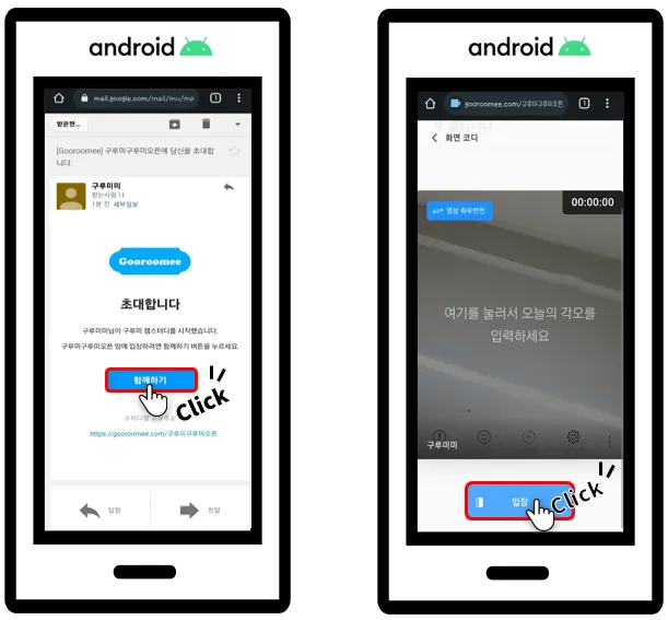 안드로이드 기기에서 스터디방에 입장하여 스터디를 진행하는 방법!